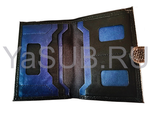Многофункциональная обложка 3 в 1 картхолдер +портмане +авто документы на зпстежке Черный с Синим